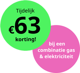€63 welkomstkorting bij gas + elektriciteit